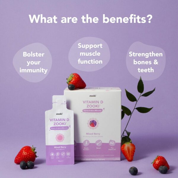 Zooki 3000iu Liposomal Vitamin D3 + K2 Liquid Sachets | 4X Higher Absorption Clinically Proven | Ultimate Immunity, Bones, Muscles Support | Vegan | (Mixed Berry Flavour, 30 Servings)